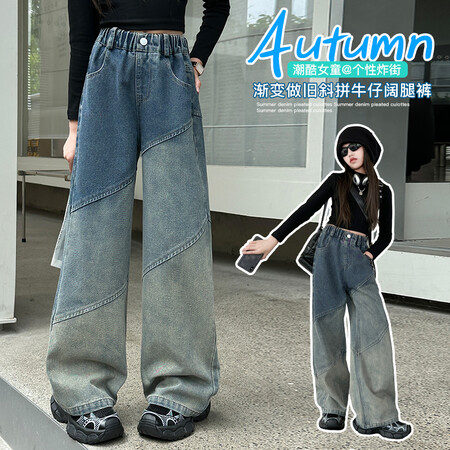 1*8下载“TT2403废土风斜拼三节牛仔阔腿裤”图片包