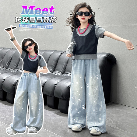 1*0下载“TT2534赫本假两件短袖加夏夜银河牛仔”图片包