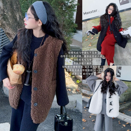 1*9收藏“TT2589款韩系黑咖马甲毛衣套装”